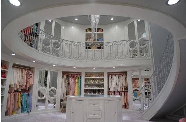 I’ve never seen a two story closet before, and I could actually write an entire article on this one room alone. However, I will confine myself to just allowing the image to do all the talking. So, go ahead and drool for a few seconds. ;-) (I’m not sure what I plan to do yet, but I will definitely be recreating some of this room in the future.)